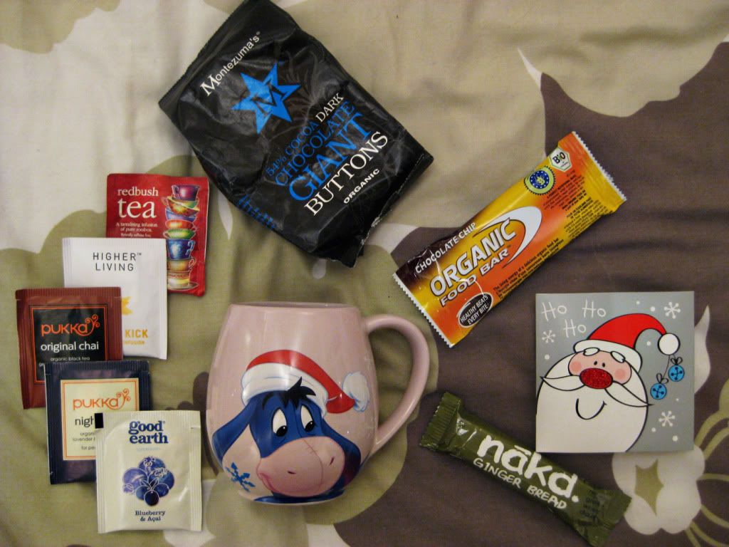 We’ll start with me - I was Secret Santa for Lucie. Unfortunately Lucie hasn’t posted a blog but I sent her a jar of home made salted roast nut butter, some RAW cacao and lemon chia balls, a diary free chocolate Santa and a little charm necklace with a teapot on it ;-)